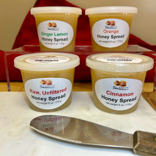 Delicious honey spreads! Great on toast, pancakes, waffles, bagels, add to smoothies or oatmeal or even stir fry and other dishes!