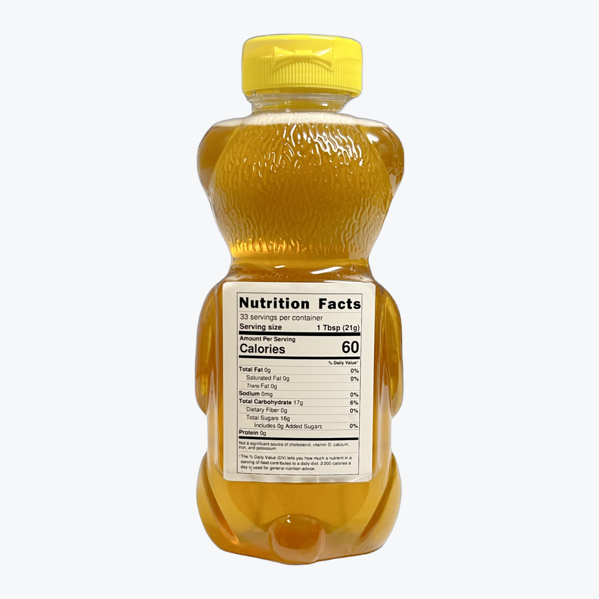 NOTE: ALL NATURAL HONEY CRYSTALIZES. LIQUIFY BY PLACING BOTTLE IN WARM WATER.