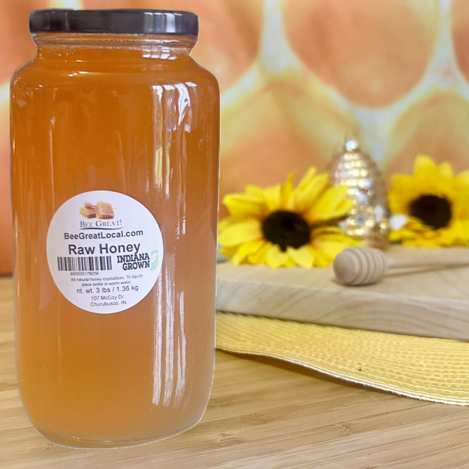 This is the Best Pure Raw Honey you can find anywhere. We only sell unpasteurized honey, so we never heat it to high temperatures, which denatures the beneficial enzymes. It's delicious raw honey, which means it goes straight from the hive into the bottle. It is unfiltered honey, which causes it to crystalize because all natural honey crystalizes. The big honey packers ultrafilter their honey to remove pollen, propolis, and beeswax to inhibit crystallization.  (See the video below for tips on liquifying crystalized honey). Bee Great honey is also 100% USA honey from the wildflowers of Indiana. You know exactly what you're getting when you shop pure raw honey from Bee Great because we're the beekeepers and we only work with beekeepers locally we know and trust.